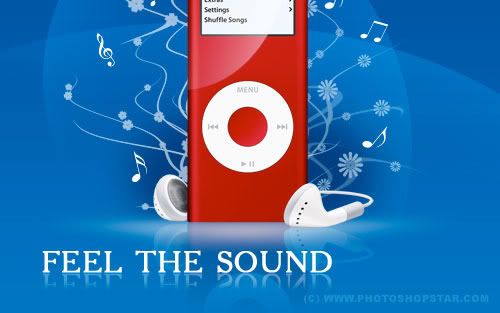 This is an online advertisement. The repetitive pattern of the swirled lines leading to the iPod is an example of radiation structure. There is a musical motif surrounding the product. The composition of the advertisement is symmetrical and balanced, giving it optical equillibrium. The red and the blue colors give it contrast, and the empty blue coloring in the background is an example of white space. Although not completely identical, the advertisement had visual frequency where the lines emerging from the iPod have a repeated distance between them.